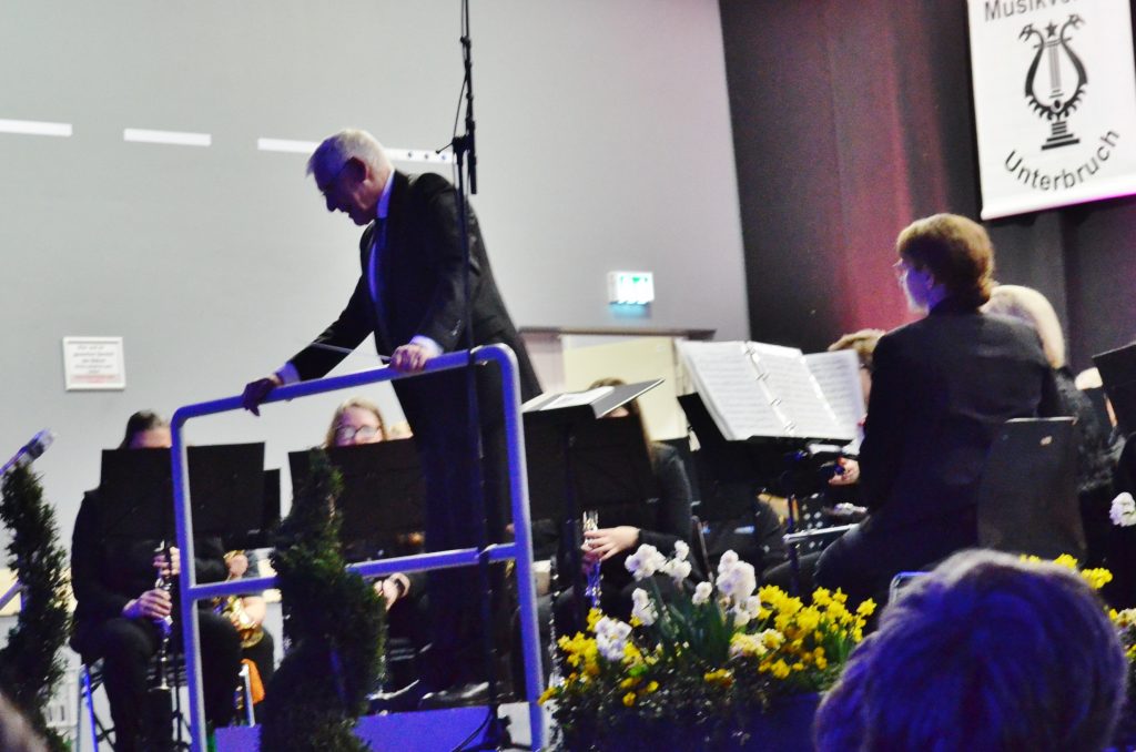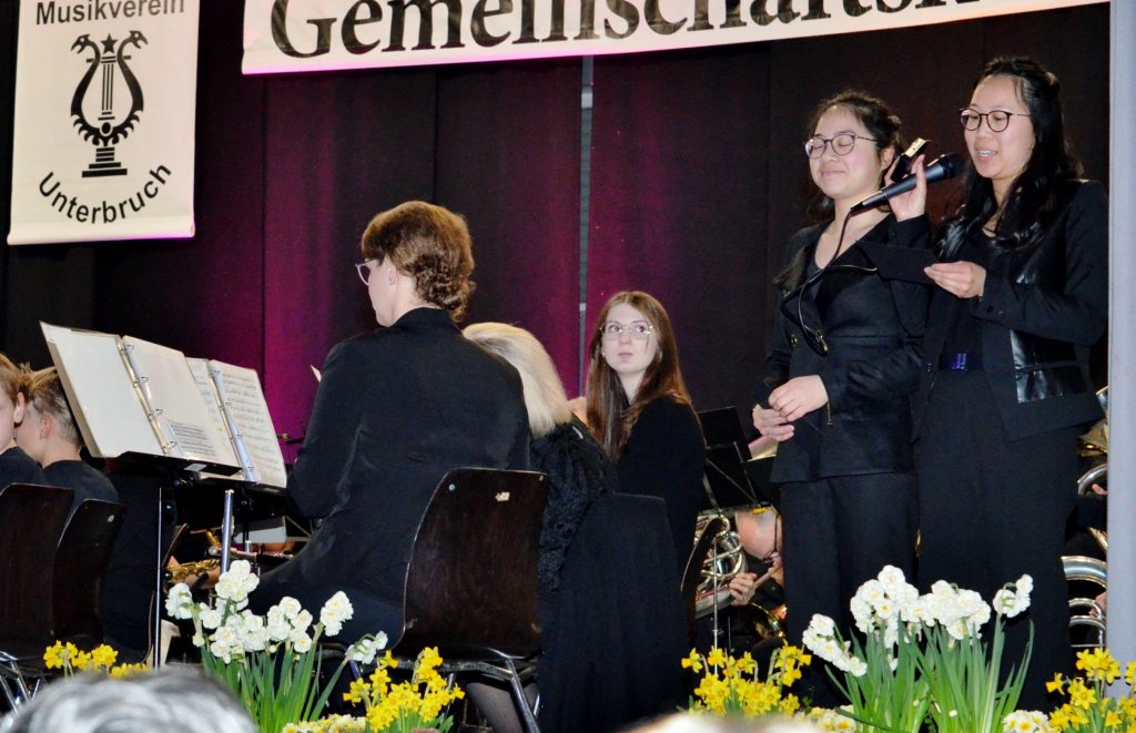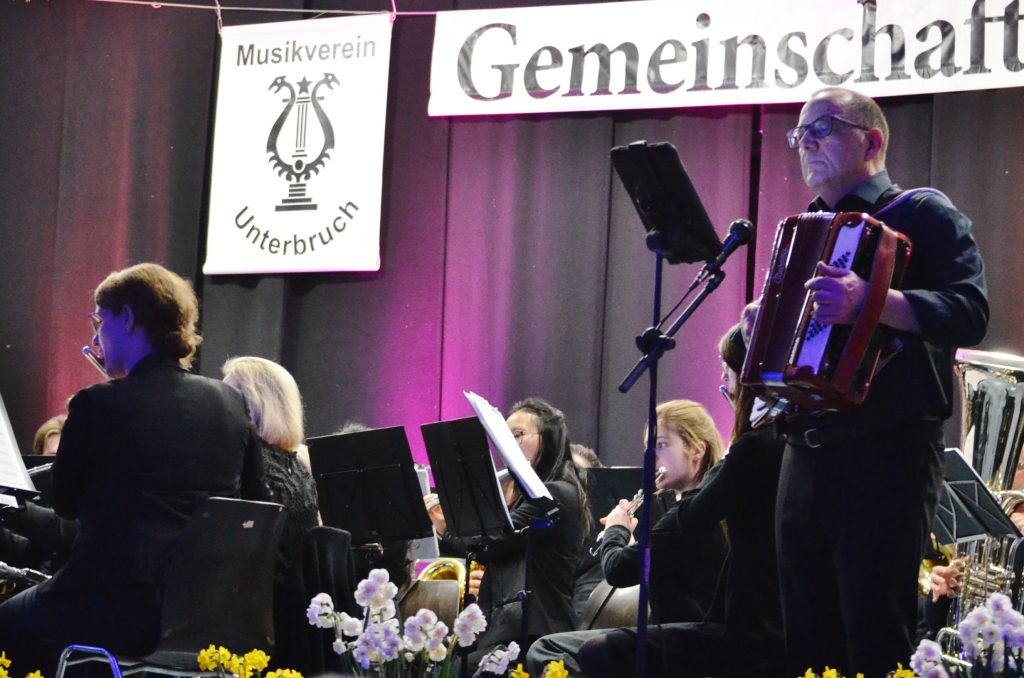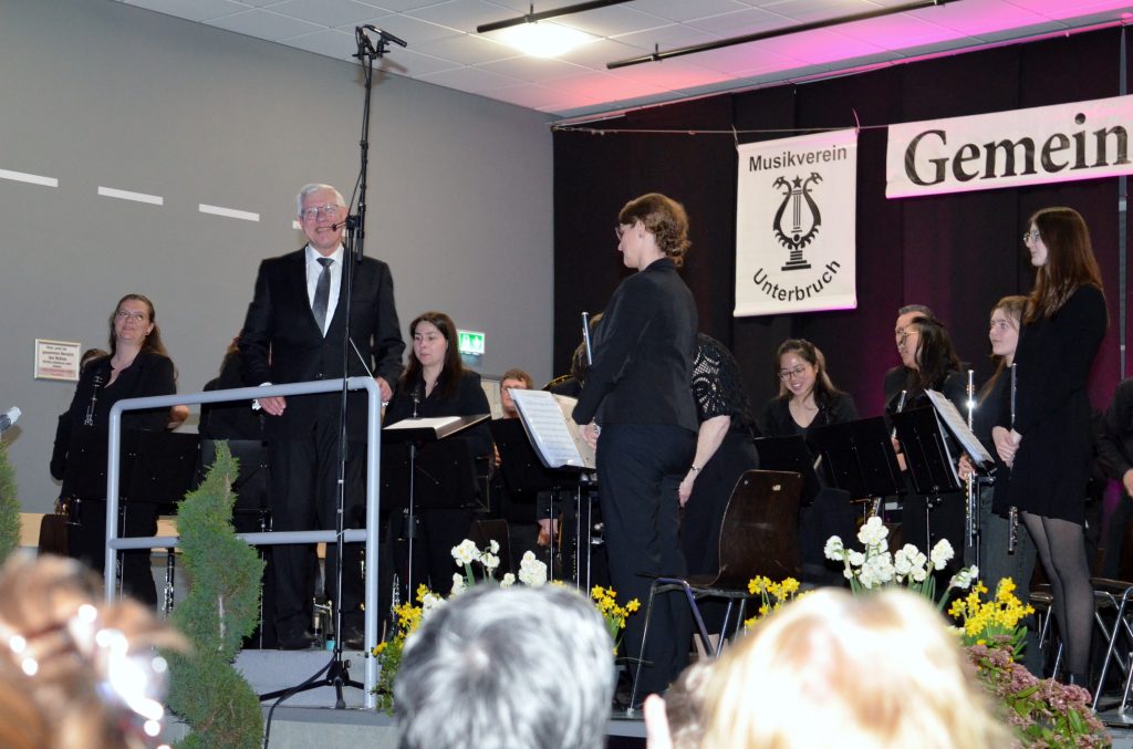 Auch hier war es unser Dirigent, der bei einem Konzertbesuch ihres Chores durch ihre Stimme verzaubert wurde.“ Auch sie erhielt einen Blumenstrauß. Ein weiterer Dank gilt dem UKV, der im Hintergrund den Ausschank und den Imbiss organisierten. Der Vorsitzende dankte allen Sponsoren, die mit Ihrer Werbung das Programmheft aufgewertet und somit interessanter gemacht haben. Die pflanzliche Gestaltung der Bühne und der Tische wurde vom Pflanzenhof Plum aus Unterbruch gestellt, auch dafür bedankte er sich herzlich. „Bedanken möchten auch wir – die Mitglieder beider Vereine – uns aber ganz besonders bei Ihnen: Vielen Dank, dass Sie heute gekommen sind – Danke für Ihren Applaus und Ihre Unterstützung – das ist ein nicht bezahlbarer Lohn für unsere Arbeit und Mühen.“